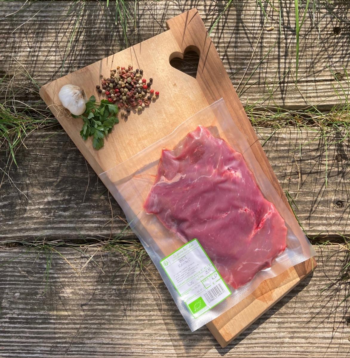 Bavette de boeuf, flanchet, race limousine, agriculture biologique, mise sous-vide.