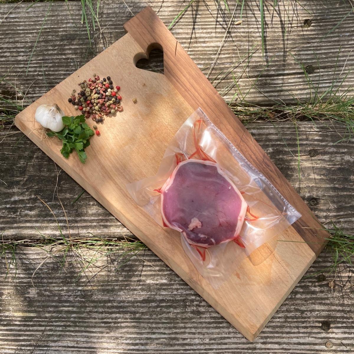 Bande de barde de porc bio autour, merci de préciser si vous ne la souhaitez pas.