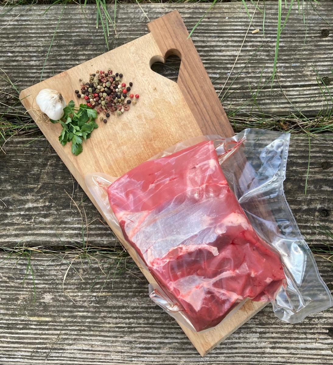 Viande de race limousine, agriculture biologique, mis sous-vide.