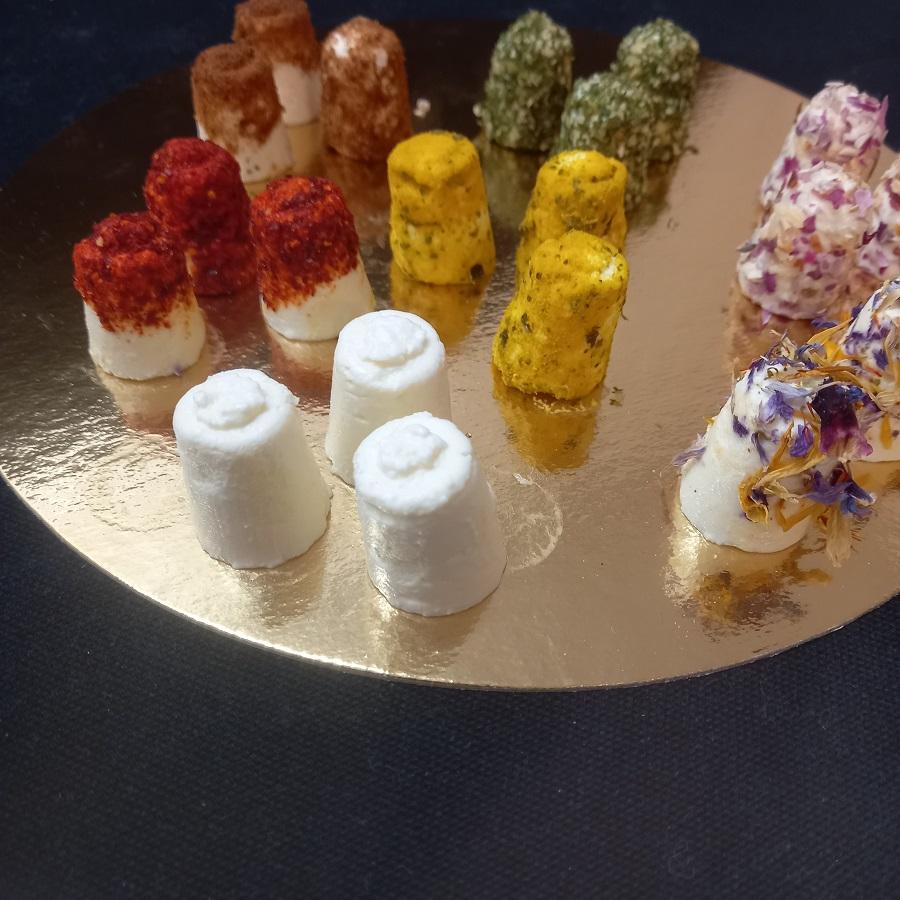 12 Bouchons au lait cru de vache pour agrémenter vos apéros ou vos plateaux. 4 variétés : nature /citron-poivre vert / piment d'Espelette / saveurs de Noël (cannelle-sésame-noisettes)