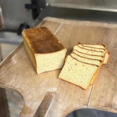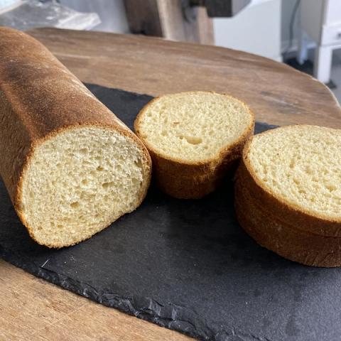 Pain de mie fabriqué avec notre farine type80, de la levure, du lait et du beurre.
