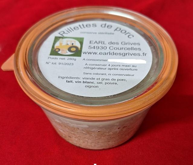 rillettes en bocaux 280g même recette qu'en pot