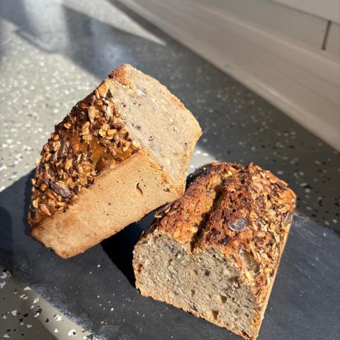 Pain fabriqué avec notre farine de blé T80, du levain naturel et un mélange de 4 graines (lin, sésame, tournesol, pavot). Façonné à la main, il est cuit dans un four à bois.