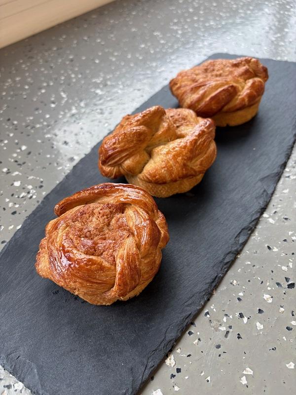 Composé de pâte à croissant et d'un insert à la crème d'amandes.