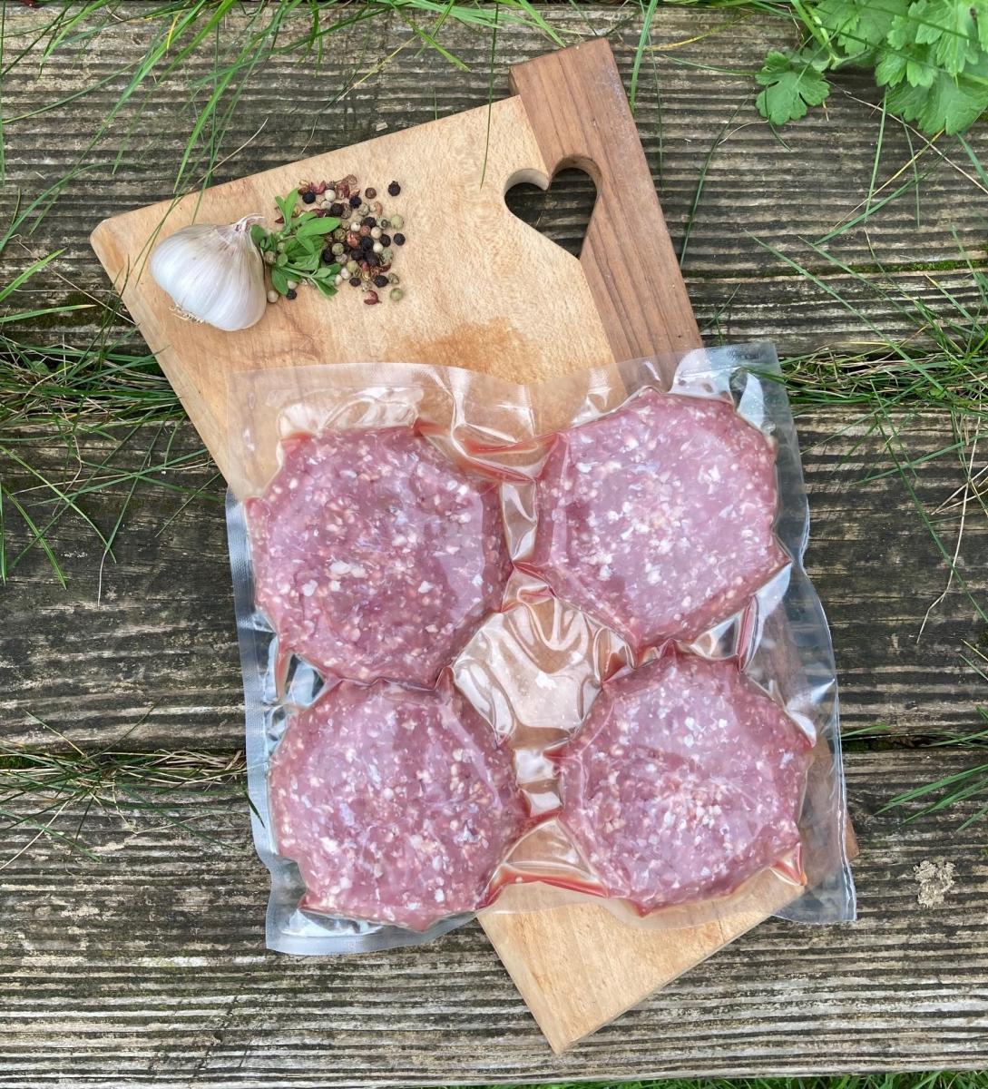 Préparation hachée salée de veau, élevé sous la mère, agriculture biologique, mis sous-vide par 4.