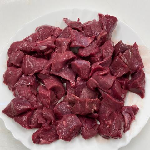 Sanglier coupé en cube pour daube (bourguignon)