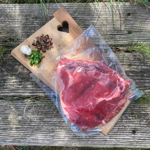 Steaks dans le rumsteack de boeuf, race limousine, agriculture biologique, mis sous-vide.