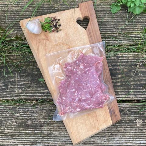 Préparation hachée salée de veau, élevé sous la mère, agriculture biologique, mis sous-vide par 4.